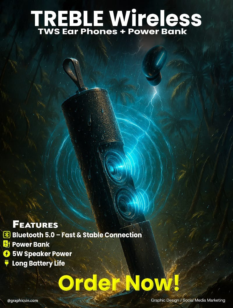The TREBLE speaker is a 3-in-1 concept in a miniature format that adapts to all your desires: - A 5Watt Bluetooth speaker to share music with your friends - In-ear TWS headphones to isolate yourself in your musical bubble. - A 1500 mAh backup battery to directly charge your smartphone, MP3 or any other electronic device. The speaker also serves as a charging case for your headphones when they are stored. With Bluetooth technology, your music automatically switches from the speaker to the headphones when you take them out, and switches back to the speaker when you store the headphones. Adapt to your desires in a single gesture. The TREBLE 3-in-1 speaker is the ultimate accessory for sound lovers: all forms of music are combined!